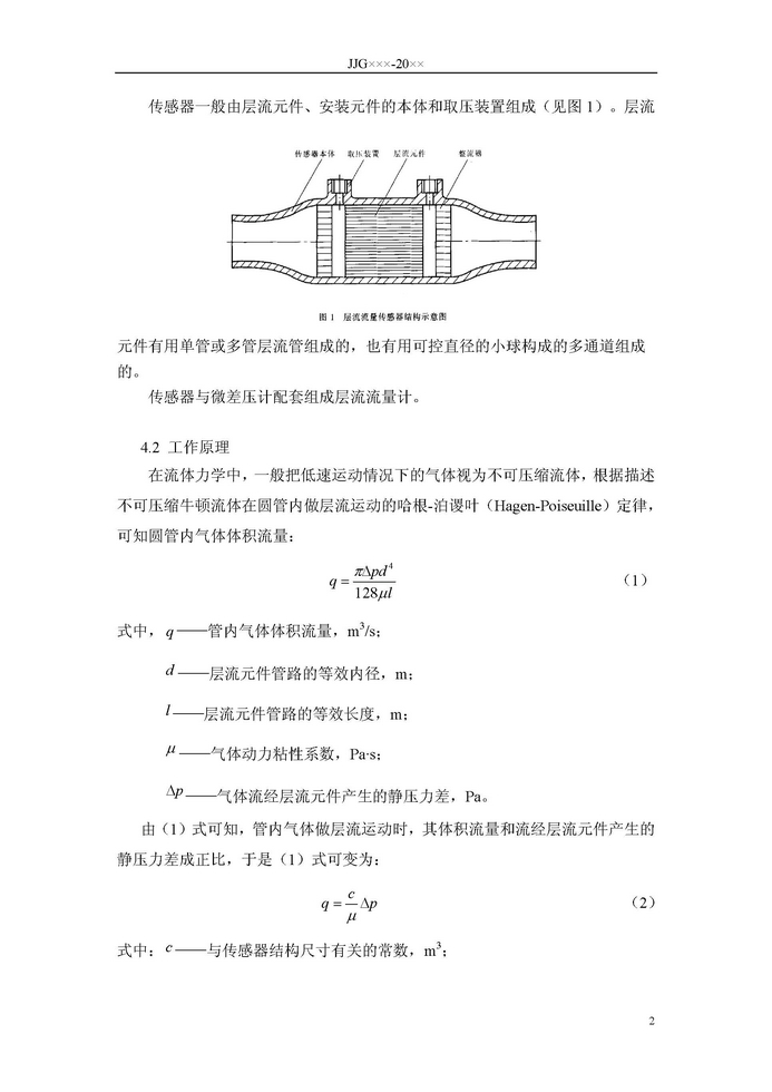 《氣體層流流量傳感器檢定規程》JJG7 36- 20XX