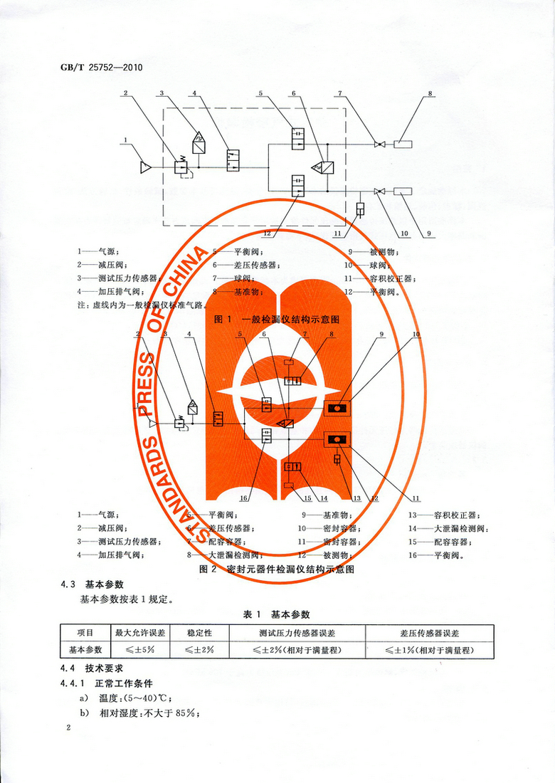 《差壓式氣密檢漏儀》GB/T 25752—2010
