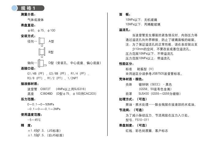 本產品符合日本工業(JIS)標準,是一款性價比高,用途廣泛的壓力表。