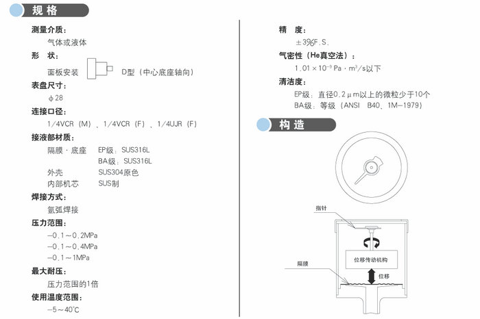 接氣部為隔膜,和傳統的C型波登管不同,便于用戶清潔和充氣包裝。