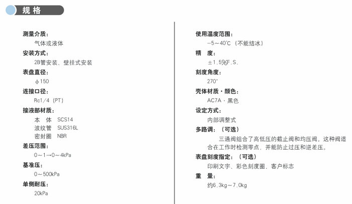 這種差壓表主要用于測量4KPa以下的微差壓。可以把測量值轉換為各種單位,能用于液位和流量的測量。