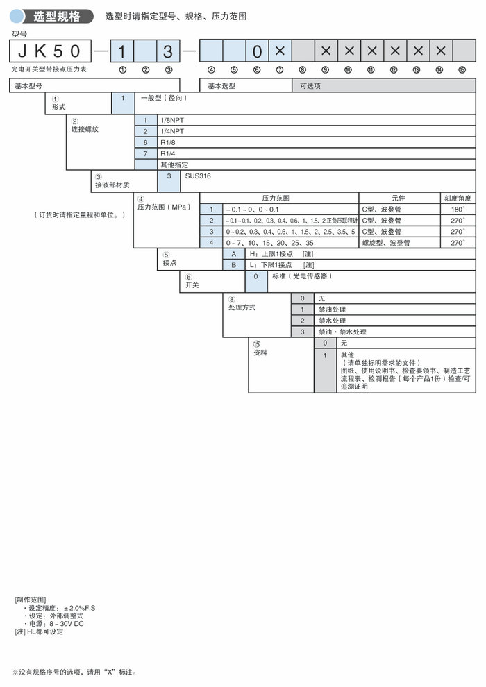 本產品是小型帶接點壓力表,內置了可靠性的光電開關,主要用于控制報警輸出和繼電器的開關等